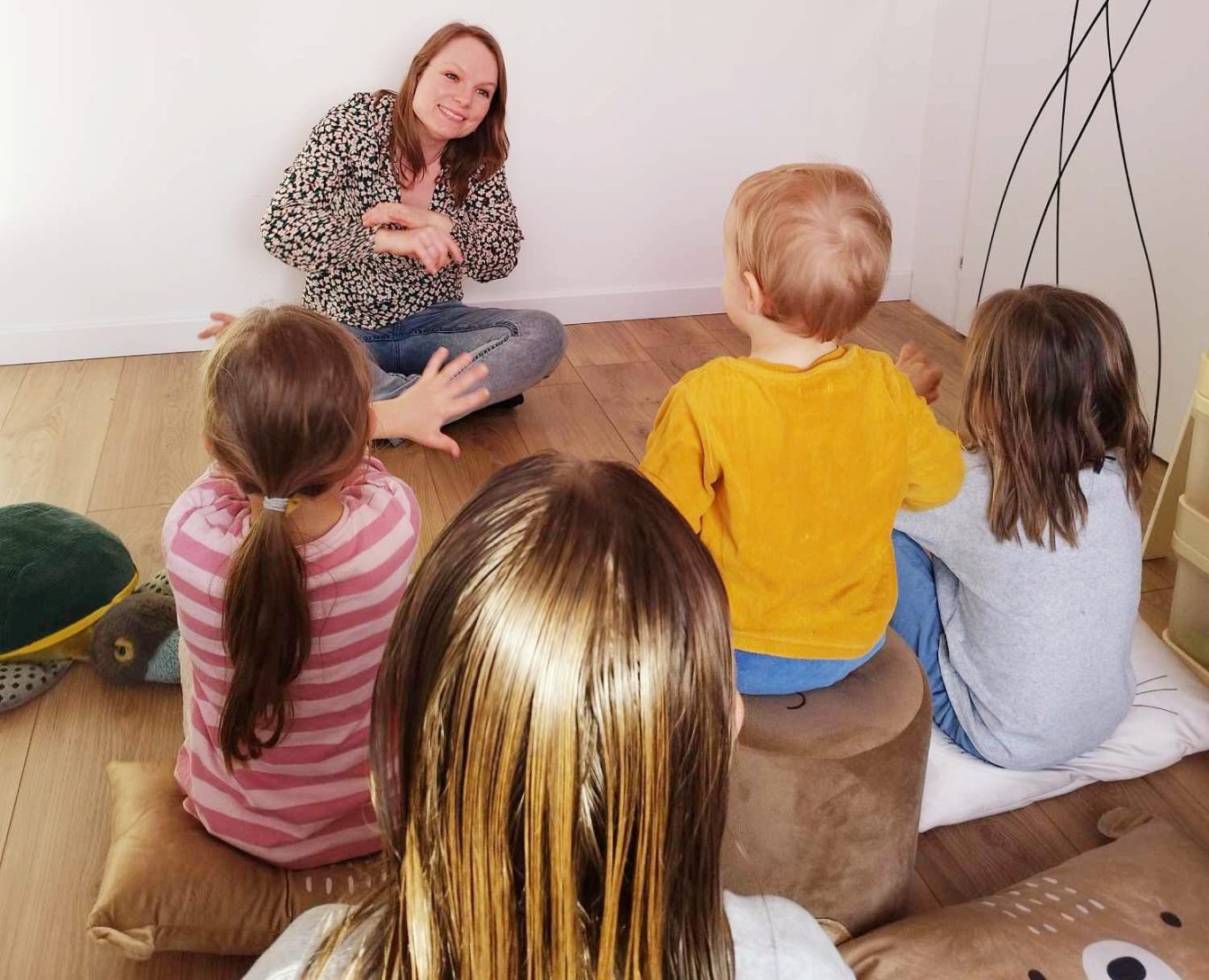 Séance de 30 minutes où s'entremêlent comptines signées, chansons à la guitare, jeux de doigts, jeux de bouche, chansons d'ici et d'ailleurs.